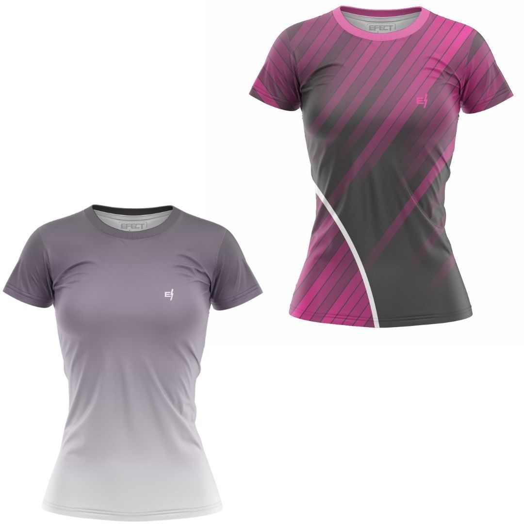 Kit 2 Camisetas Fitness Feminina - SKY e Preto Cinza