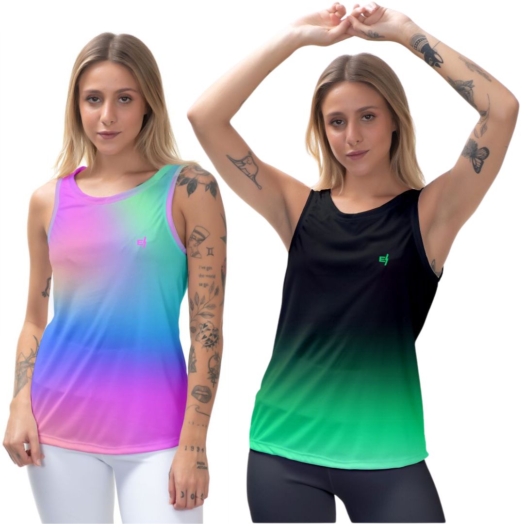 Kit 2 Regatas Fitness Feminina - Tie Dye e Preto Verde