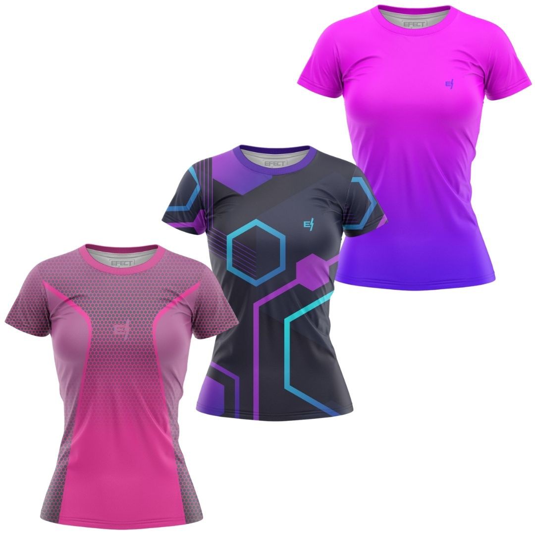 Camiseta confeccionada em 100% poliéster Dry fit com tratamento Full Dry, que transporta o suor para a camada externa da fibra potencializando a evaporação e a troca térmica.